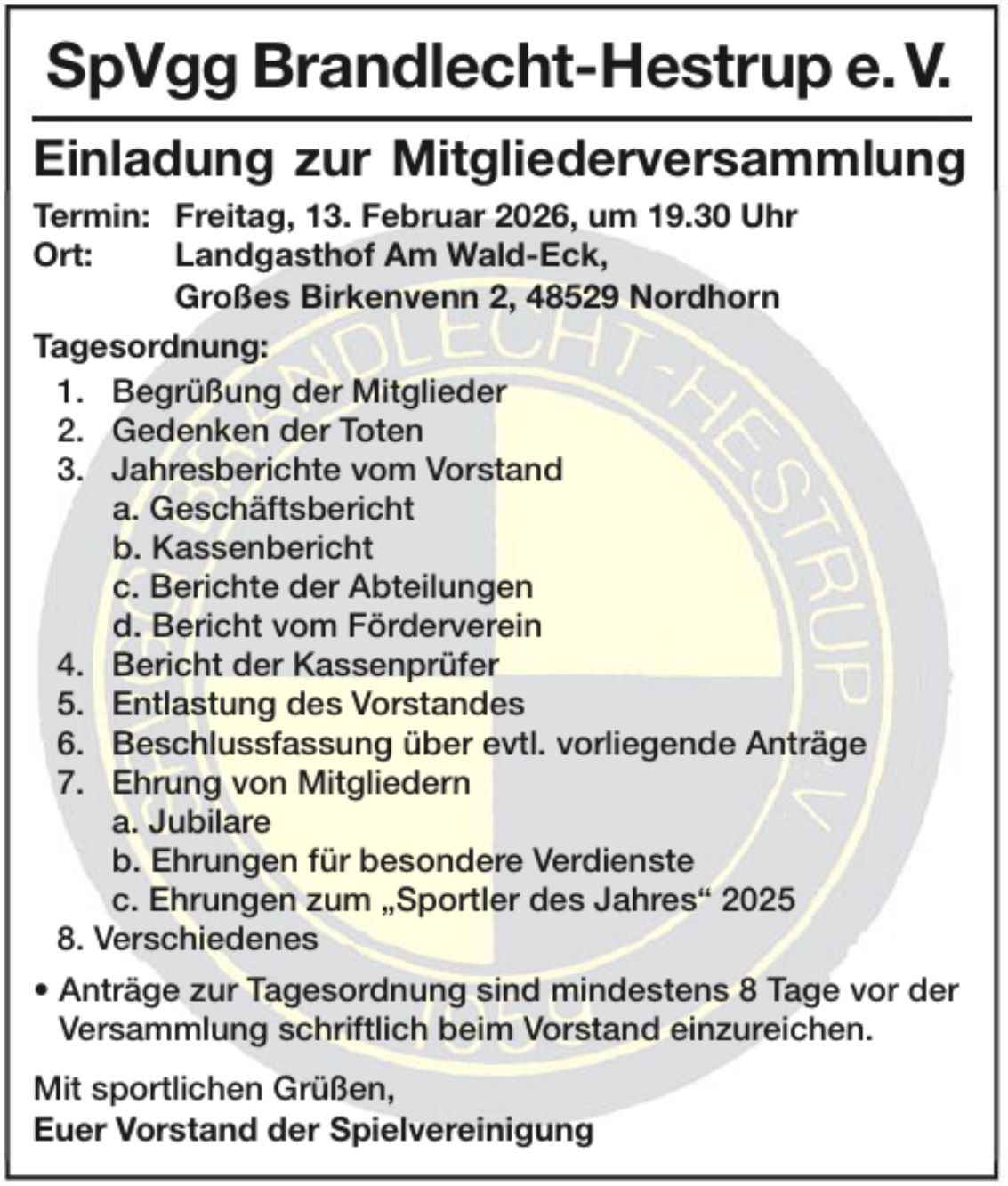 Bericht zur Mitgliederversammlung des Fördervereins der SpVgg Brandlecht/Hestrup
